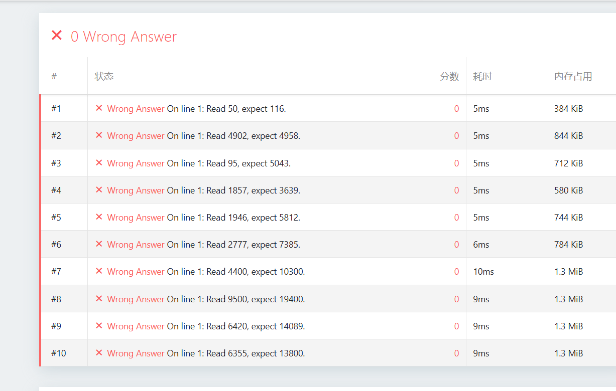 f[k+1]的更新逻辑里,j1和j2的计算与k的步数关系出现了“错位”。导致它在计算第 步的得分时,可能加的是第 步或第 步位置上的权值。 - 起点/终点权值漏算:在“一去一回”的逻辑中,如果 的循环边界控制不精准(比如少算了一步),就会丢失掉路径最后几个格子的权值,导致 Read(读到的结果)远小于 Expect(预期答案)。